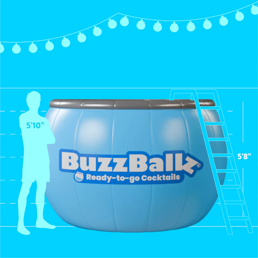 Made by BuzzBallz, the #1 selling single-serve premixed cocktail brand in the U.S., this inflatable above-ground pool stands over 5 feet tall and nearly 6 feet wide. It’s painted in their fan-favorite Berry Cherry Limeade blue and even comes with: