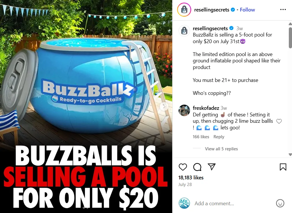 As of now, the BuzzBallz Pool is officially sold out on the brand’s website. It was released as a limited-edition summer drop, and due to its novelty and affordability, it sold out quickly. Rumors suggest some units may appear on resale platforms like eBay, with prices rumored to reach $1,000 or more.